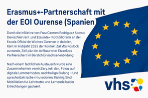 Durch die Initiative von Frau Carmen Rodríguez Alonso, Deutschlehrerin und Erasmus+-Koordinatorin an der Escola Oficial de Idiomas Ourense in Galicien, kam im Frühjahr 2025 der Kontakt zur vhs Rostock zustande. Ziel war der Aufbau einer Erasmus+ Partnerschaft im Bereich Erwachsenenbildung.